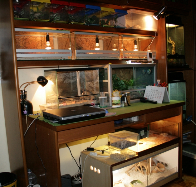 Questo sì che si chiama ottimizzare gli spazi ghghgh...ricordo anni fa quando anche io incastravo i terrari in camera...fortuna che poi sono riuscito ad avere una stanza tutta per i gechi