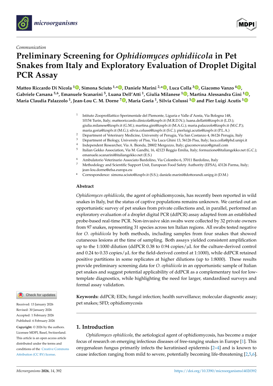 La terrariofilia può rappresentare uno strumento utile per la ricerca scientifica e per la prevenzione della diffusione di malattie. A dimostrarlo è la pubblicazione "Preliminary Screening for Ophidiomyces ophidiicola in Pet Snakes from Italy and Exploratory Evaluation of Droplet Digital PCR Assay" (Di Nicola et al., 2026), frutto della collaborazione tra la Italian Gekko Association e l’Istituto Zooprofilattico del Piemonte, Liguria e Valle d'Aosta.
